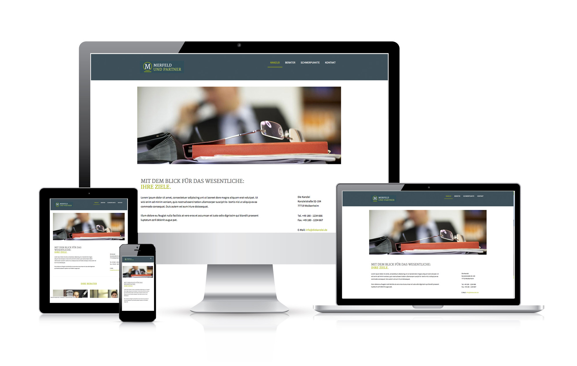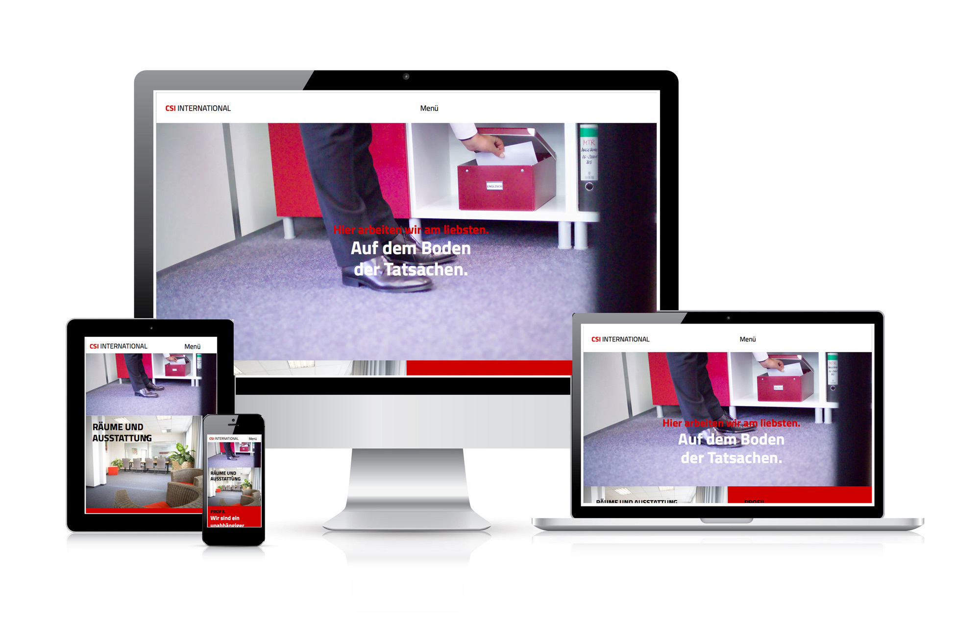 Dank eines reaktionsfähigen Responsive Designs, können wir Ihren Auftritt so gestalten, dass er flexibel auf alle Endgeräte reagiert. So wird er gleichermaßen auf Smartphones, Tablets, Laptops und Desktops für jeden Betrachter so übersichtlich und benutzerfreundlich wie möglich präsentiert.